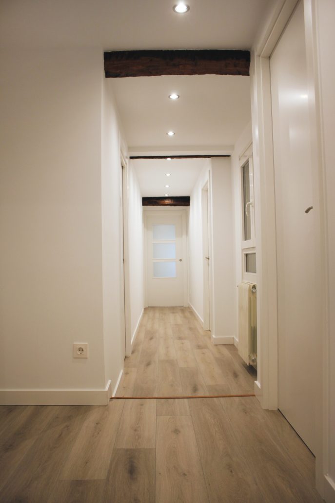 Ekitermik ha reformado una vivienda de 90m2 en el casco viejo de Bergara. Se ha realizado un trasdosado en las fachadas de 11cm de lana de roca, mejorando notablemente el aislamiento térmico.
